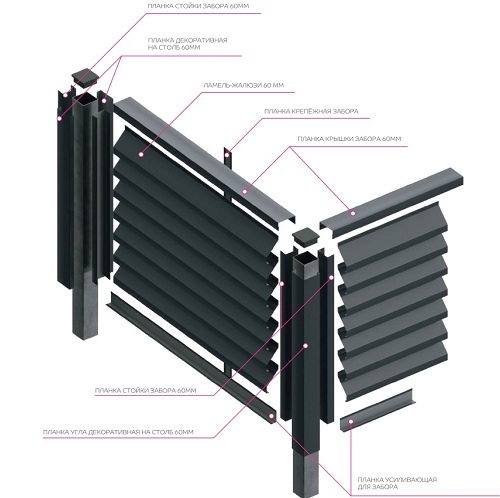 Материал устойчив к деформации, одинаково хорошо переносит дождливую, жаркую и ветреную погоду. Заборы-жалюзи легко монтировать.